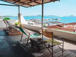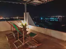 There are canvas beds on the rooftop for us to sit and enjoy the breeze and the view. But at 8 pm, the rooftop will turn on the lights, beautiful colors, and transform into a cool bar where you can sit and sip a drink, listen to soft music, and enjoy the lights of Sattahip city and the blinking lights of the boats in the middle of the sea. The bar is only open to guests staying here.