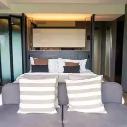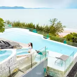 Come here and let me tell you that it is very complete in terms of happiness. Today we stayed in the "Executive Room", a room with a bathtub on the balcony with a sea view. It is very suitable for relaxation. Spend time in the room. In the afternoon, go down to have Afternoon Tea at The Rocks Cafe. In the evening, go to fill up on deliciousness at Lunar Italian Restaurant. Wake up in the morning and recharge with a variety of breakfasts. Then go swim and enjoy the view at the Infinity Pool.
