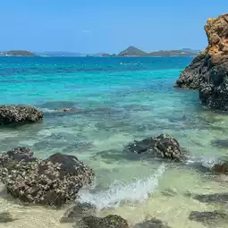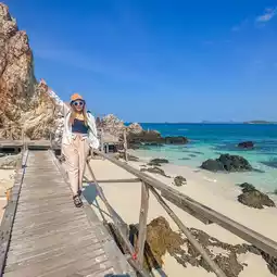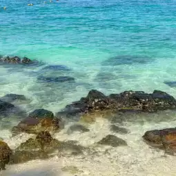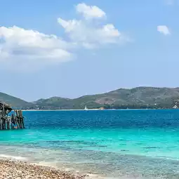 A beautiful beach near Bangkok that's easily accessible is "Koh Kham," a stunning island that's open to both Thai and international tourists. Experience its white sand beaches, crystal-clear waters, and abundant snorkeling opportunities, one of the most pristine coral reefs in Thailand's eastern waters.