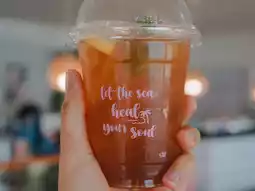 With white sand and clear water, the shop is decorated cutely. The highlight that you can't miss is the large glass windows that clearly show the beautiful view of the sea. 🌅