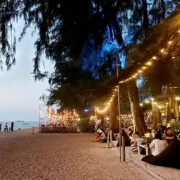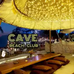 CAVE BEACH CLUB is located in Na Jomtien, Pattaya. It is a cafe located by the sea. It is beautiful from the entrance. There are beautiful photo spots. Starting from the chic entrance sign. When you enter, it is beautiful. The atmosphere is decorated in a Balinese style. There are indoor and outdoor seats. If you want to watch the sunset, you have to choose to sit outdoors. But if it is a holiday, there may not be the angle you want.