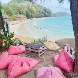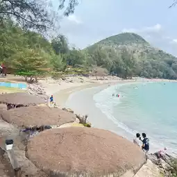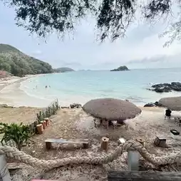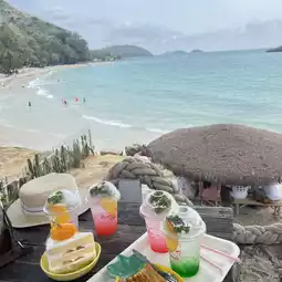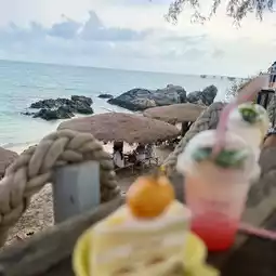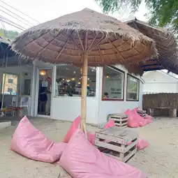 Cave beach club is a small cafe in a military camp in Sattahip district, next to Nang Ram beach with white sand and beautiful clear water. It is a good place to sit and let the wind and waves blow your heart to relax while you relax. The cakes and drinks are delicious and the price is reasonable. The view from the shop is very beautiful. Order a drink for a hundred but get a view worth millions. Traveling is very comfortable by private car. The military road is beautiful and clean. But if you just go to take pictures without ordering a drink, you will have to pay 100 baht. #VisitChonburi #SattahipCafe