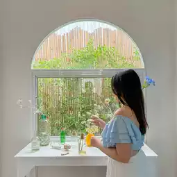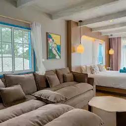 S e r e P e r e Cafe and room area "S e r e S e r" decorated in a minimalist-Santorini style, every corner is cute, you can take pictures in every corner, the atmosphere is really great