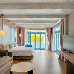 It's private, the room is very cute, each piece of furniture is thoughtful, the TV with picture frames doesn't deviate from the minimalist theme at all