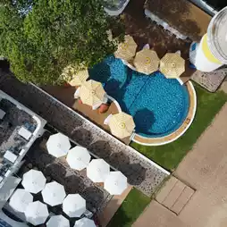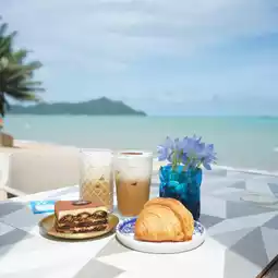 This is a lovely cafe 🥰 Delicious food, good mood, good tone decoration, and the Cafe Sweet zone ✨ is a 5-room accommodation on the 2nd floor. # With complete facilities Today, Nicky stayed in a suite, 2 spacious rooms, the interior is decorated very cutely 👍🏻 There is a swimming pool and a bar by the sea. # Especially on Saturdays and Sundays, there is live music 🎼 and a fire show every Saturday.