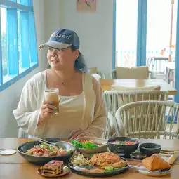 Today, I'll check in at 📍Sea of Love Pattaya, a lovely cafe with accommodation and hidden in a cafe. It feels like a foreign country. There are only 5 rooms, minimalist, mini-heart ❤️ Delicious food, great view. I give it a score of 10 out of 10.