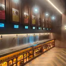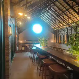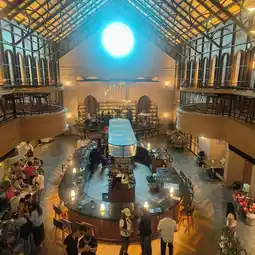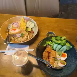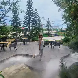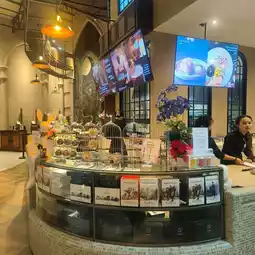 Just looking at it from the outside, it's beautiful and intriguing. Once you step inside, it's truly stunning, with every part of the design being perfect. The tone of the cafe creates an atmosphere suitable for bringing a date, family, or friends. It's photogenic from every angle. Outside, there's an artificial waterfall and a large fish pond, which make for great photo ops while waiting for food and drinks. The food and beverages are delicious and reasonably priced. Overall, it's great.