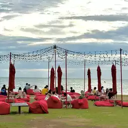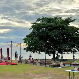ที่นี่มีทั้งโซน Indoor และ Outdoor ให้มาช่วงเย็นบรรยากาศดีลมทะเลอ่อนๆและนั่งดูแสงอาทิตย์ตก 🌅 แต่ถ้าใครมาช่วงเที่ยงบ่ายแนะนำนั่งในห้องแอร์เลยเพราะร้อนมาก ☀️