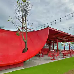ตั้งอยู่ในโรงแรม Ana Anan Resort&Villas อยู่ติดริมทะเลเข้ามาก็จะเจอโทนสีแดงเด่นและโครงสร้างการออกแบบที่สะดุดตา ❤️ ตัดกับบรรยากาศริมทะเลและสนามหญ้าเขียวๆ