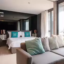 A super chic hotel near Ban Amphur Beach, just a short walk from the hotel. There is a brown teddy bear doll that welcomes everyone who comes to stay. Decorated in a modern style with many cool photo spots.