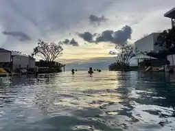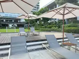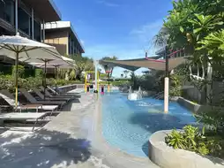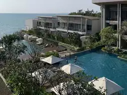 Choose to stay at the 5-star Renaissance Pattaya Hotel. Here, they have underground parking, so you don't have to endure the hot car. There is a golf cart to pick you up. The room is close to the swimming pool. Ours is a city view room, but there is a very wide sofa in the room. What I like the most is the 3 swimming pools: the upper pool and the lower pool with a sea view. It is a leftover pool. The swimming pool is wide. There are large seats on both sides. Take beautiful pictures. The view is good. Watch the sunset with a view of the mountains and the sea. It's really beautiful. And the last pool is a medium-sized children's pool. Suitable for small children There is a canvas to block the sun. It's not too hot. There is a bar to order drinks and snacks. Sit and relax. The sun may be hot. You have to wait until about 4-5 pm.