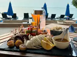The taste is normal for seafood. As for the place, you can eat and look at the sea view.