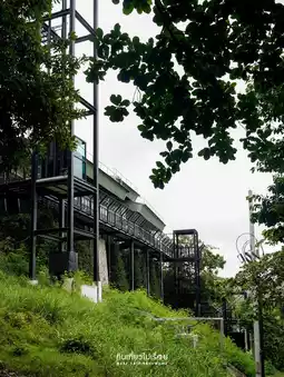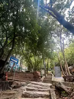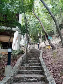 As for us, we went up the way to the aquarium. There is a fork in the road that is a shrine and old bathrooms. It's actually a bit scary. ๐คฃ๐คฃ Let's be brave. Since we're already here, let's head up. As long as there are stairs, we will reach our destination. We walked up for about 15 minutes. There were only forests on both sides of the road, dense trees, insect sounds, and hot weather. I thought to myself that I was overdoing it. Until we reached the top, I almost fainted because it was so hot. My body and arms were wet. I could still see the pictures. I thought I had taken a shower and forgotten to dry myself off. ๐