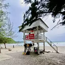 โจHat Nam Sai is another beach with a great atmosphere. The sea water is beautiful and clear. It is a great place to relax, swim, and take pictures. Because the beach is quite private, there are convenience stores, restaurants, shops for renting mats and canvas beds. There are also bathrooms and showers. It is very convenient for tourists. Hat Nam Sai is located in a military camp in the Sattahip area. You can access it from Saensarn or the HTMS Chakri Naruebet. On holidays, we recommend coming to relax at Hat Nam Sai a lot. ๐๏ธ