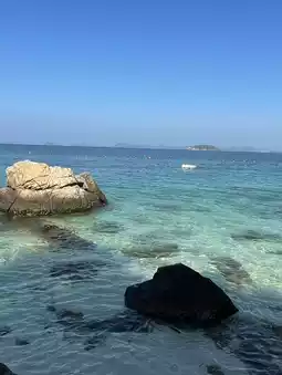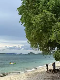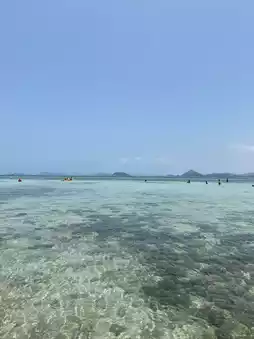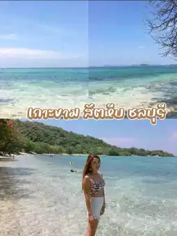 Traveling to Koh Kham, we traveled from Bangkok to Khao Ma Cho Pier, where there is convenient parking. Then walk to buy tickets to cross the island first. Wait a moment, the officer will come to inform you to board the boat according to the reserved time. Get off the boat for a moment, enjoy the view and you will arrive at the island. This island has no accommodation. Inside the bathroom is clean. There are many restaurants. There are many activities on the island. The water is clear and there are few people. I recommend you try to come visit #100 ways to travel