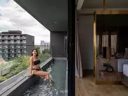 🌴 No matter how many times you come back to stay, you will still love it as much as ever. ANA ANAN Resort & Villas Pattaya, a 5-star Pattaya resort by the sea in the Na Jomtien area, minimalist style. The interior is decorated in gray and white tones. There are many room types to choose from. For those who like privacy, there are also pool villas. As for the room we stayed in, the Ocean Suite Skypool, you can see the sea view from the end of the bed. There is a private swimming pool.