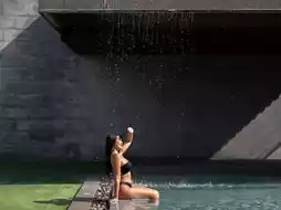 📸 The communal swimming pool is a 𝐃𝐨𝐮𝐛𝐥𝐞 𝐃𝐞𝐜𝐤 𝐏𝐨𝐨𝐥 and there is a 𝐒𝐞𝐞 𝐓𝐡𝐫𝐨𝐮𝐠𝐡 point in front. This point is a very popular photo spot. For those who want to get a cool photo to pose for, there is also a slide for kids to play on.