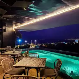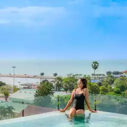The infinity pool with panoramic view is on the 8th floor. If you come in the evening, you can watch the sunset and the panoramic view from the pool corner.