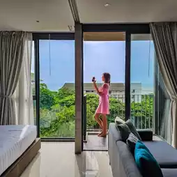 This time, Wan stayed in the 𝗢𝗻𝗲 𝗯𝗲𝗱𝗿𝗼𝗼𝗺 𝗱𝗲𝗹𝘂𝘅𝗲 𝗦𝗲𝗮𝘃𝗶𝗲𝘄 room. The room is spacious, with separate areas, a sitting area, a small kitchen, and a private balcony with a sea view.