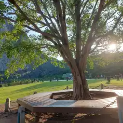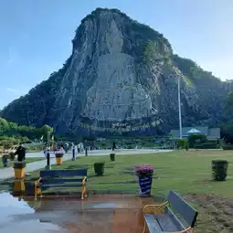 Khao Chee Chan, I believe many people have been there. This is an important place with a carved Buddha image on a stone mountain called 🙏"Phra Phuttha Maha Wachira Uttamo Phassada"🙏 The carved patterns are beautiful, standing out on large stone slabs. The place is beautifully decorated. The surrounding area is a shady garden. In front, there is a wide lawn where you can stand and admire the beauty of the entire Buddha image. There are corners to sit and take pictures at various points.