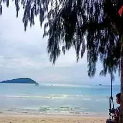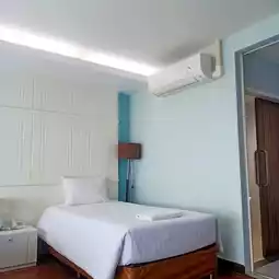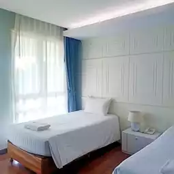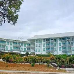 #Beachfront accommodation The accommodation I've been to by the sea here is another place that I'm very impressed with. It belongs to the Royal Thai Navy Civil Service Quality of Life Promotion Center, Hat Nang Rong, Sattahip, Chonburi. Although it is under the care of the Navy, it is open to the public to book a stay at an inexpensive price. Breakfast is included, but the view is great. The place is airy, clean, and spacious. The rooms are very spacious. Most importantly, you can see the beach and walk down to play in the water. The sand is very white and the water is very clear. If you're interested in privacy and not many people, I recommend this place. 👍