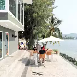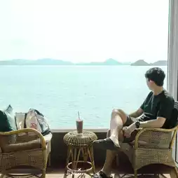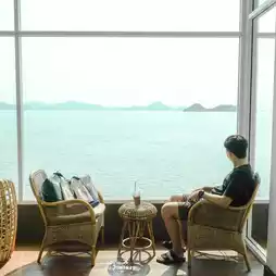 There are so many photo spots here. There are two floors and an outdoor seating area to sit and enjoy the breeze. Whether you want to see the sea view from a high angle or sit outside and enjoy the breeze, I can tell you that it's all good. The atmosphere is super nice.