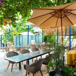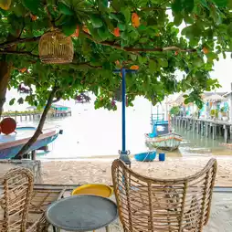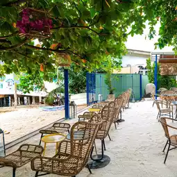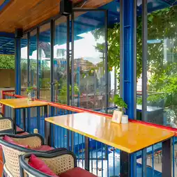 Manga & Hubba, a newly opened cafe and restaurant on Bang Saray Beach. The atmosphere is nice, shady, and you can see the sea view. There is also a private beach. There are cute corners for taking pictures. The shop has 2 floors, both indoor and outdoor zones. The 2nd floor is the indoor area with a room for many people. The ground floor is the outdoor zone.