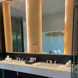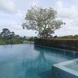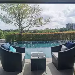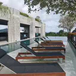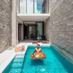 A pool villa style resort decorated in a simple and luxurious style. There are many photo spots to take pictures. Every house has a private swimming pool. The atmosphere around the resort is decorated in a loft style with exposed concrete and lots of trees. It's not hot at all. In addition, there is also a communal swimming pool for you to use.