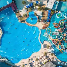 A water park zone for kids with a large bucket of water pouring down. And slides for the kids to play