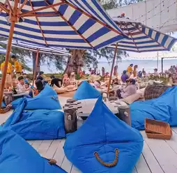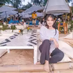 Cave Beach Club, a super cool cafe in Soi Na Jomtien 10... The interior of the shop is decorated in Balinese and Bohemian styles. There are many beautiful photo spots. Plus, it's right on the beach. The atmosphere is really nice... If you come in the evening, you can sit and watch the sun. The atmosphere is super romantic.