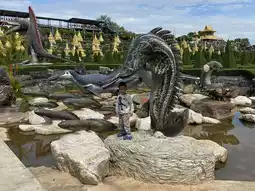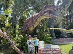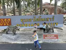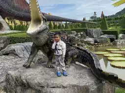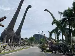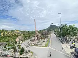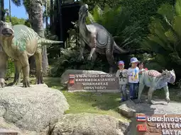 Nong Nooch Garden Pattaya, the valley of the dinosaurs. If you visit Pattaya, you must stop by Nong Nooch Garden at least once. The area of Nong Nooch Garden is very large. If you walk, you might not be able to walk. They have a tram that stops at various points. There are dinosaurs, elephant feeding, and a botanical garden. All of them are beautifully built. It's worth the ticket price. At that time, I pressed to book for a little over 200 baht. Free food set, considered cheap. The day I went, the weather was a bit hot. My face was burnt. #Nong Nooch Garden Pattaya