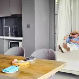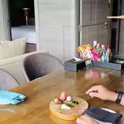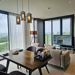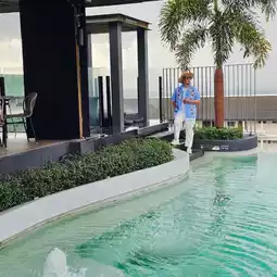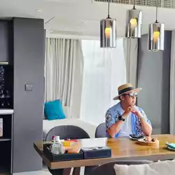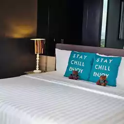 Sharing the location of accommodation near Ban Amphur Beach, Na Jomtien. Here is Cross Vibe Pattaya Seaphere, located close to Ban Amphur Beach with convenient access. The rooms are spacious and extremely comfortable. It is also pet-friendly. The facilities here are complete, focusing on full relaxation. Additionally, there is an infinity pool on the 8th floor with a 180-degree sea view, perfect for photography enthusiasts looking for beautiful angles. The highlight for those who enjoy evening atmospheres and BBQ is the rooftop here, which offers a great view. Don't miss the Sky Vibe Rooftop Bar and Restaurant, where you can chill by the pool and watch the sunset.