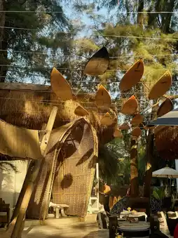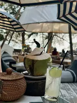 The outdoor area of the restaurant has direct access to the seaside, so you can run directly to the seaside to play! The sea is sparkling at sunset. Drink it with Thai coconut, soothing!