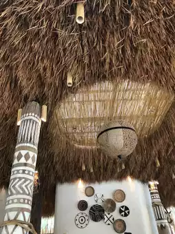🌅 The shop is decorated in a Balinese style, giving a relaxed atmosphere. The color tones are cool and comfortable, white, natural brown, and a touch of blue to create a cool and comfortable atmosphere, especially in the evening before the sun sets until the sun sets.
