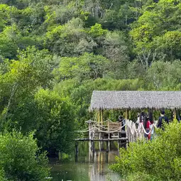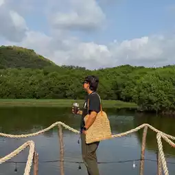 This is another small cafe in the middle of the water with a very good atmosphere. Surrounded by lush mangrove trees, birds flying around, cool breeze, perfect for sitting and sipping coffee, enjoying nature. In addition to having snacks, tea, coffee, there is also a mini zoo with deer, rabbits, peacocks, etc. for us to walk in and take pictures and feed them. It's really great😍😍