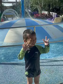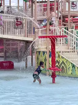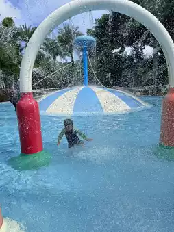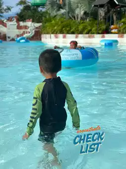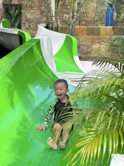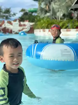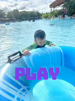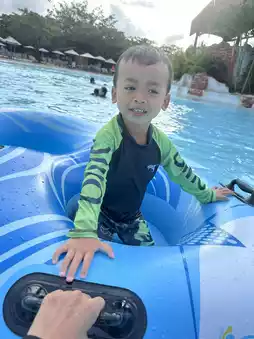 💦Lazy River, a whirlpool zone, has a pair of rubber rings for kids and adults to sit on together and float around, enjoying the view. It's very enjoyable.