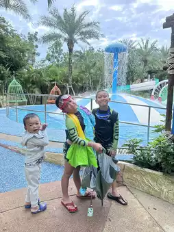 Children with 4 zones #Children under 106cm get in free, play until you drop from 5 am to 6 pm🤭🤣 3 young men #AidinTonNamPhulom are very pleased