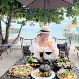 Nicky stopped by to chill out✨since the afternoon. The wind is cool and the air is very ventilated. It's so relaxing. Order food and drinks🍹Eat slowly, chill out slowly, and chat with friends. #Plus, this place is right on the beach. You can go for a walk. There is a parking lot🚗. We recommend driving to the shop first, and then a 3-wheeled car will pick you up at the parking lot. It gives you a different kind of local feeling😀
