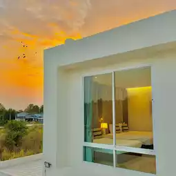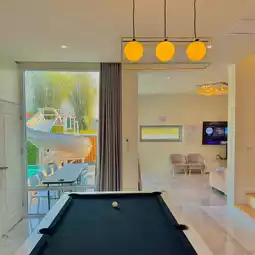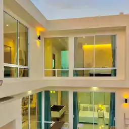 A pool villa that gives you a cafe-like feel. There are also cute photo spots. This is a large 4-bedroom house in a modern style. The atmosphere is quiet and quite private. It has complete facilities. It is a pool villa that is very suitable for relaxation. 🫶🏻🛏️