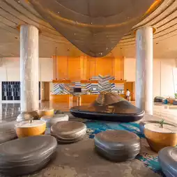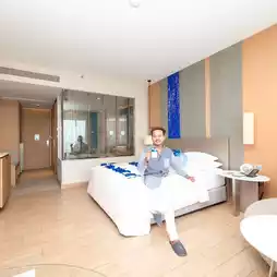 There are facilities such as a large infinity pool, a mini water park for children, a 24-hour fitness center