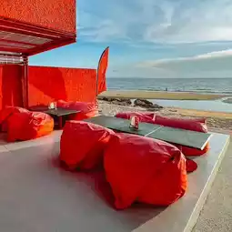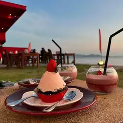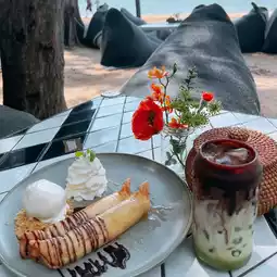 A very cool beach bar style cafe in Pattaya. Its design is in a playground theme. The shop is located in Ana Anan Resort and Villa Pattaya. The colors are eye-catching, contrasting with the sky and the sea without any fear. Take beautiful photos. Every corner is beautiful. The shop offers a full range of drinks, bakery, and food to choose from.