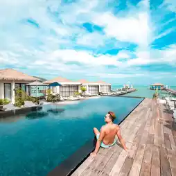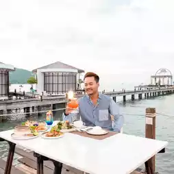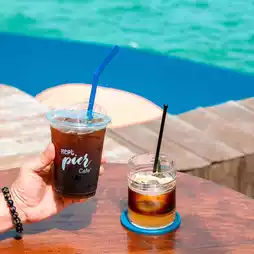 A cafe in the middle of the sea. The atmosphere is quiet and cool.