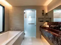🛌 We stayed in a Pool Villa Suite room with a very large area. The room is well divided into zones. There is a bedroom, living room, bathroom, separate dry and wet zones, a private pool, a sitting area, and a dining table.