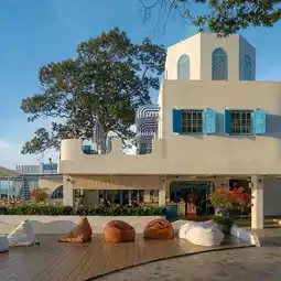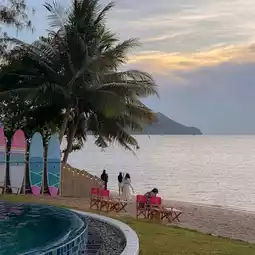 A cafe and beach club by the sea in Pattaya with great vibes, beautiful lighting, and an interior decorated to feel like being in Santorini. It is both a cafe, a restaurant, and an accommodation. There are many seating areas to choose from, both indoor and outdoor. If you come in the evening, the mood is super good. The photo corner is super hot ~ ✨😍