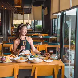 The highlight that I like very much, besides relaxing in a pool villa with a beautiful pool and a good mood, is the breakfast at the 𝙊𝙘𝙚𝙖𝙣 𝙗𝙞𝙨𝙩𝙧𝙤 restaurant, which is also very impressive. It is very delicious as a buffet and 𝙖 𝙡𝙖 𝙘𝙖𝙧𝙩 has 𝙎𝙥𝙖𝙧𝙠𝙡𝙞𝙣𝙜 𝙒𝙞𝙣𝙚 served to add freshness.