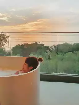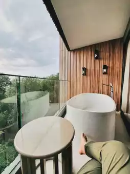 Bayphere Pattaya Hotel is the perfect eco-friendly destination where you can immerse yourself in nature, enjoying both the seaside beach and the coastal mangrove forest. It's truly amazing! The rooms here are fully equipped with amenities. The room we booked features a bathtub on the balcony, allowing us to soak while watching the sunset—a truly blissful experience. You can enjoy views of both the sea and the mangrove forest. The room is beautifully decorated with a modern touch. Another highlight is the infinity pool, which also has a jacuzzi above it—perfect for taking stunning photos. Overall, the ambiance deserves a 10/10 rating. We also tried the afternoon tea at the hotel, and it was delicious. If you're looking for this kind of atmosphere, I highly recommend this place!