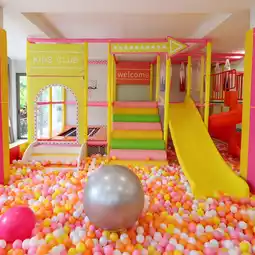 There is also a zone for children here, because there is a large ball house and various developmental toys available. Or for those who like to exercise, there is a fitness room. It is very complete.