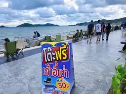 >>>> Dining seats, if you don’t rent a chair, are 50 baht each. Around the palm trees..sit wherever is convenient. Or better yet, bring a mat, a pillow, a picnic chair, a Marshall speaker, and a beer keg. Don't forget to bring beer bottles to Dongtan Beach. 😜