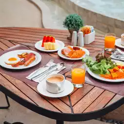 For dining, the hotel offers an Italian restaurant, Lunar Rooftop Bar, where guests can enjoy dinner with breathtaking sunset views. Breakfast is served at The Rock restaurant on the ground floor, which overlooks a natural garden, providing a refreshing start to the day.