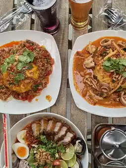 A restaurant with many styles, with a delicious and satisfying taste. The recommended menu is thick egg rice with minced pork sauce + spicy stir-fried seafood + seafood tom yum noodles with shrimp, squid, crispy pork. If you like spicy food, don't miss it. Eat it with cold craft beer, it's awesome. The beer at this shop is very delicious!
